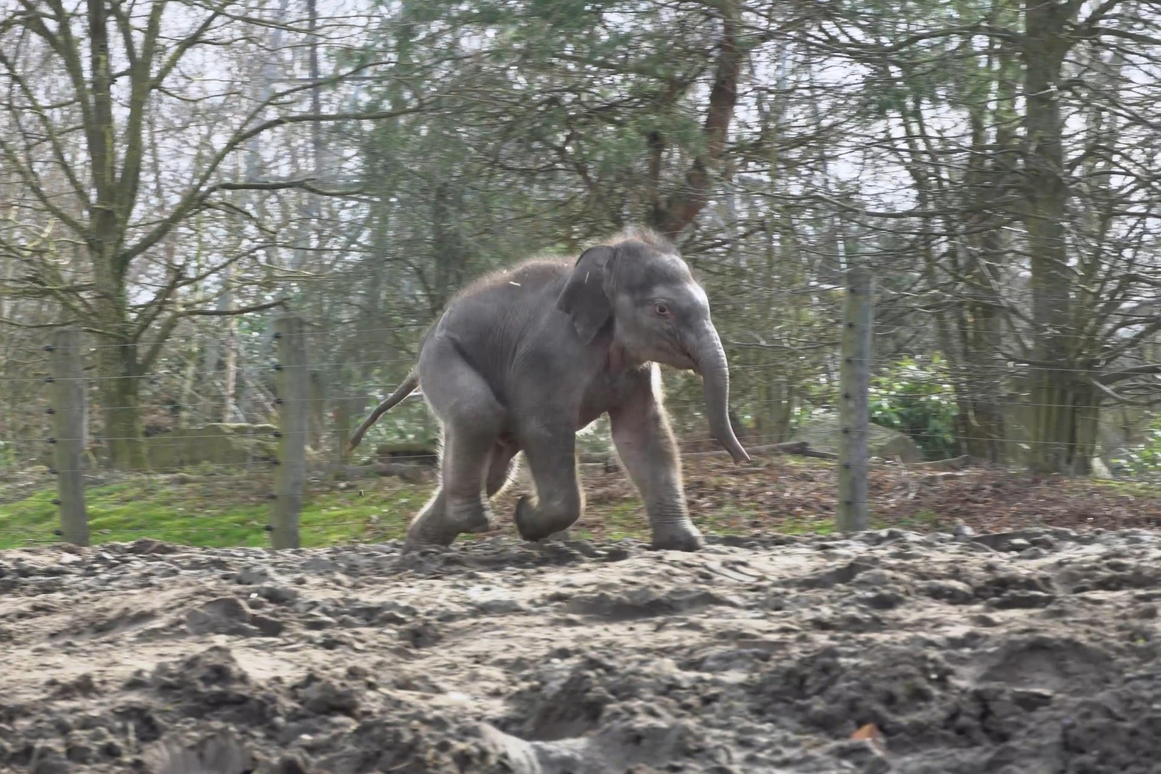 Aziatisch olifantje Rashmi, dat op 5 februari werd geboren, heeft voor het eerst zijn buitenverblijf in Eindhoven Zoo mogen ontdekken. Het nieuwsgierige mannetje rende zonder enige aarzeling richting de vlakte van de Mierlose dierentuin.